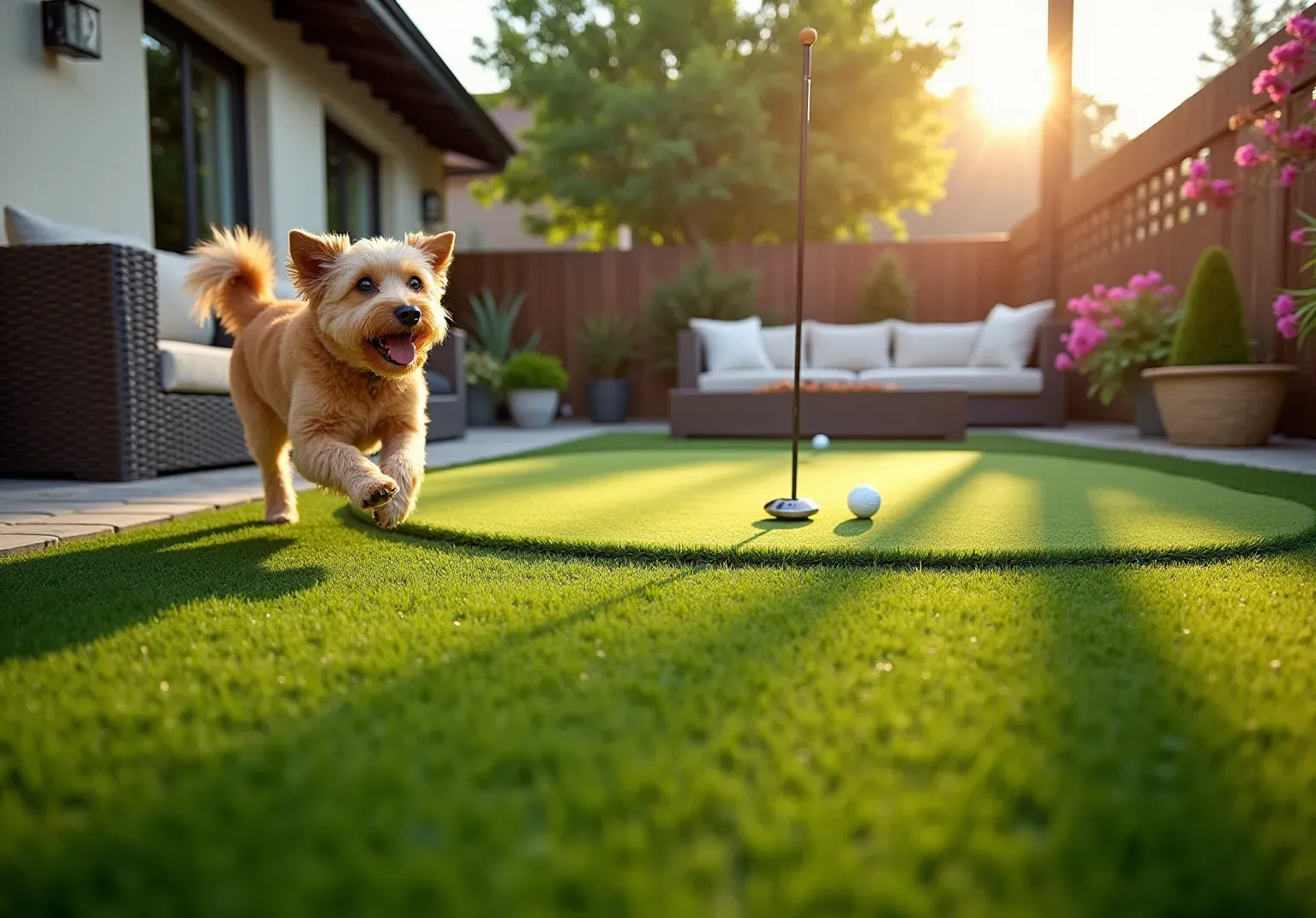 Homeowners can transform their yards into putting greens with high-quality, realistic grass, strategically placed bunkers, and water elements for practice and recreation.