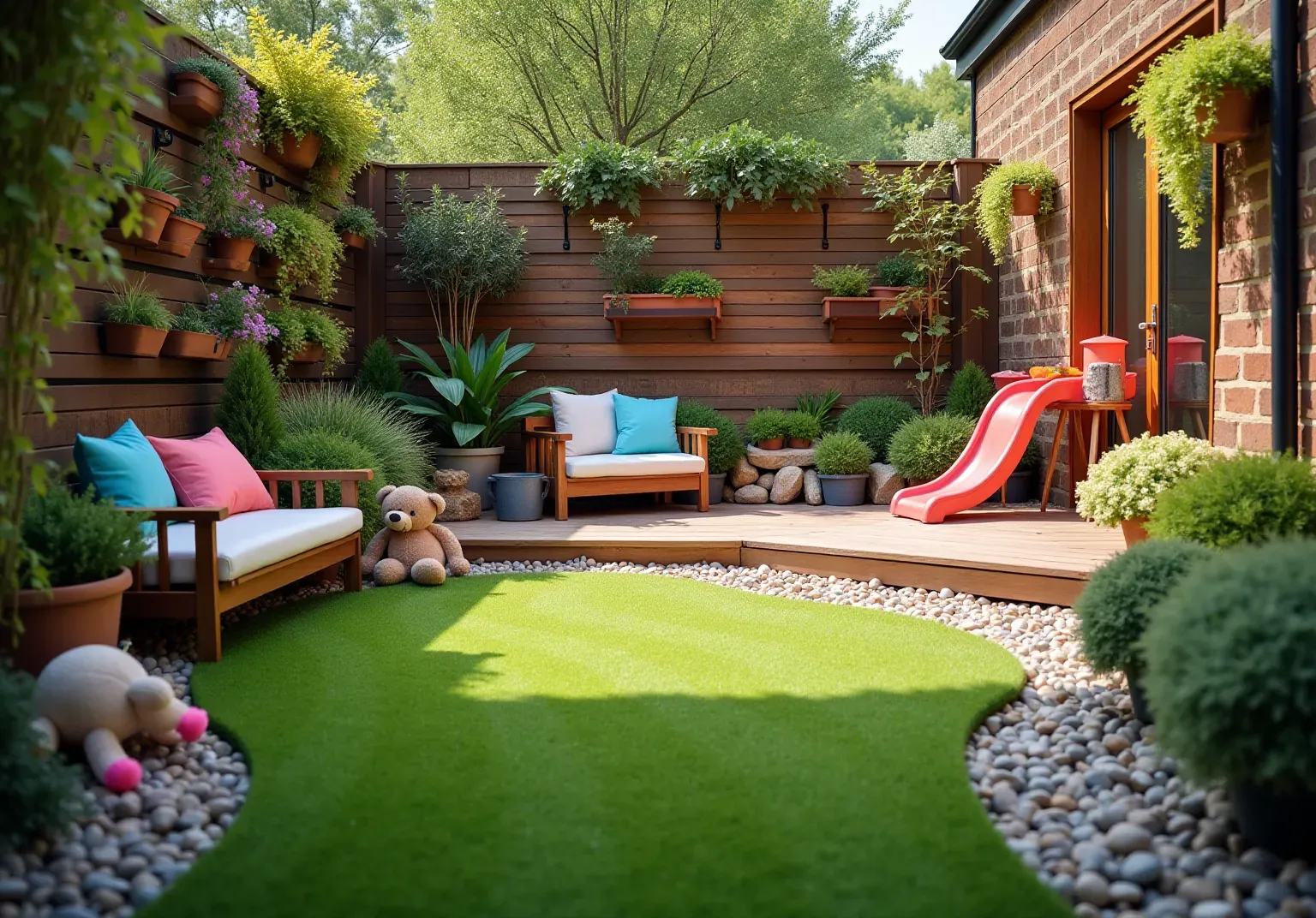Synthetic turf allows for the creation of multi-functional areas, providing a soft play space for children and pets while enhancing the garden's aesthetics and utility without the need for upkeep.