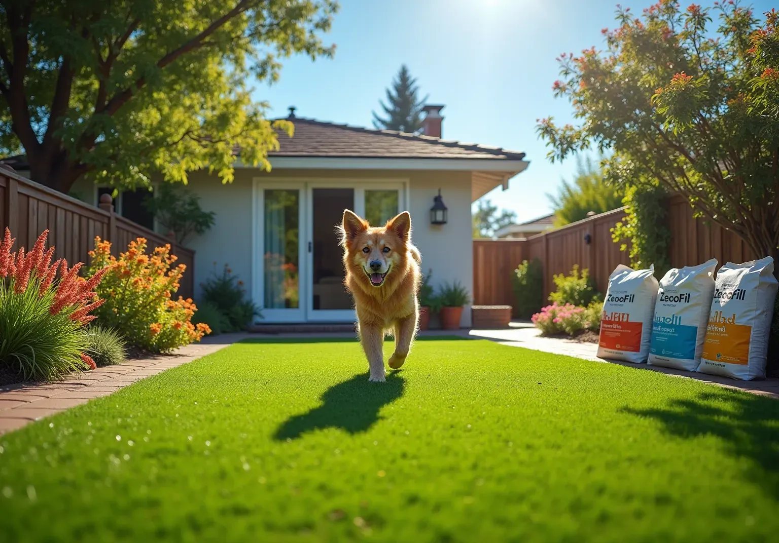 ZeoFill is an all-natural material composed of , recognized for its outstanding ability to absorb and neutralize pet odors. This mineral infill not only traps odors but also releases them when it rains, ensuring a fresh-smelling lawn. Its eco-friendly composition makes safe for pets and children, making it an ideal choice for and safety in their outdoor spaces.