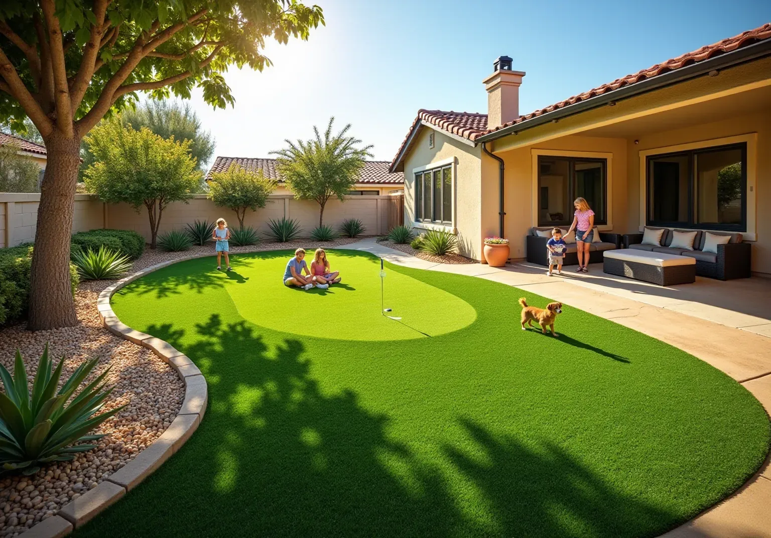 Gilbert artificial lawn maintains a vibrant, lush appearance year-round, enhancing the aesthetic value of properties and creating a welcoming atmosphere. It is also designed to be safe for children and pets, making it a great choice for families.