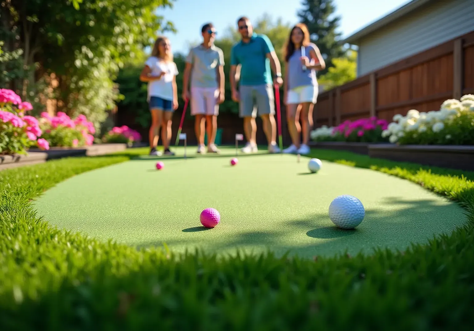 - : An outdoor turf putting green transforms your outdoor space into a recreational zone for family and friends, encouraging outdoor activity and enhancing your golf skills in a fun, relaxed environment. This versatile area can accommodate golf contests or informal gatherings, promoting family interaction and enjoyment.