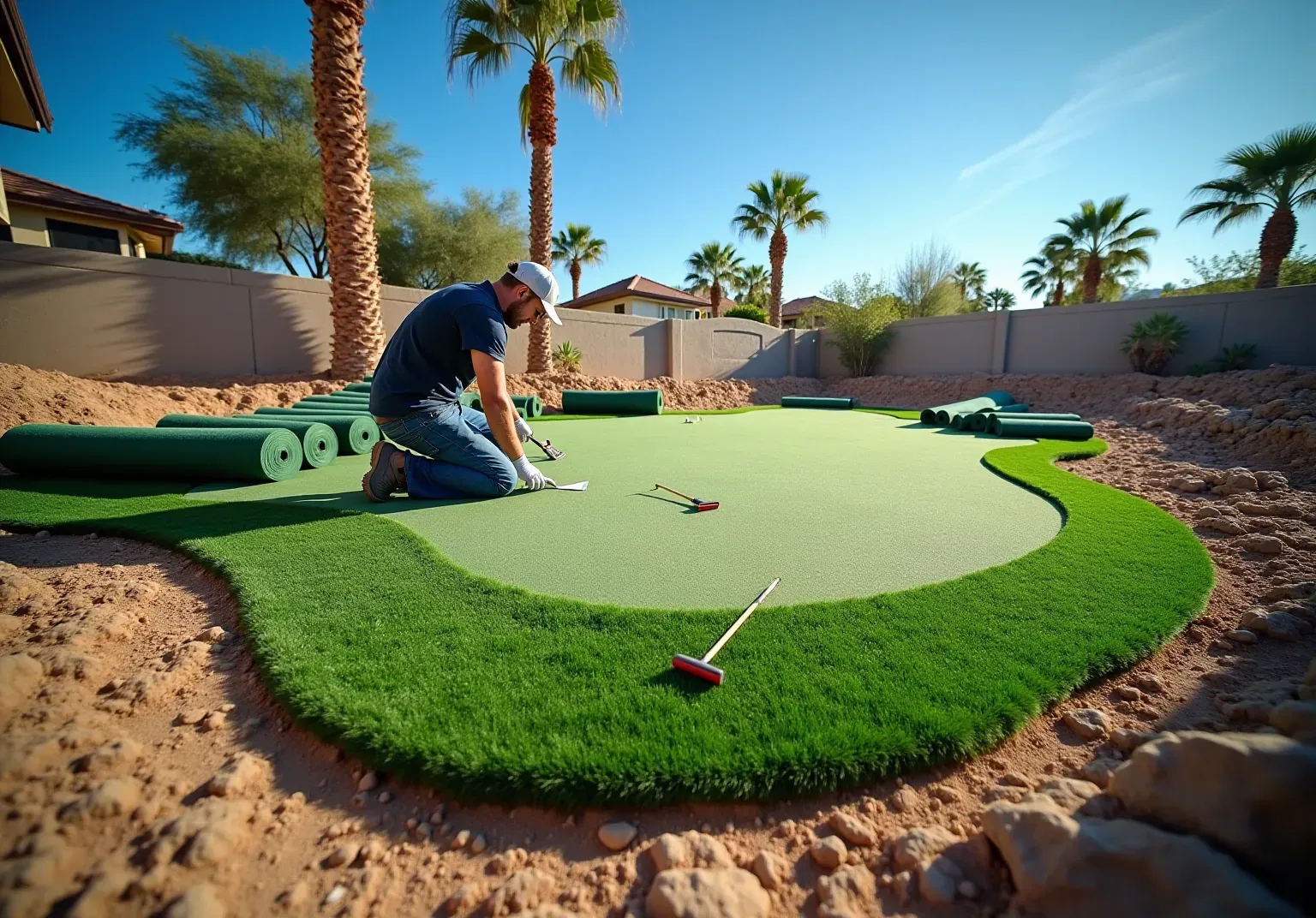 - Final Touches: Trim any excess grass and ensure that all edges are neatly finished. Carry out a comprehensive final examination to look for flaws, including confirming that cup holes are cut precisely and level with the surface, before the area is put to use.