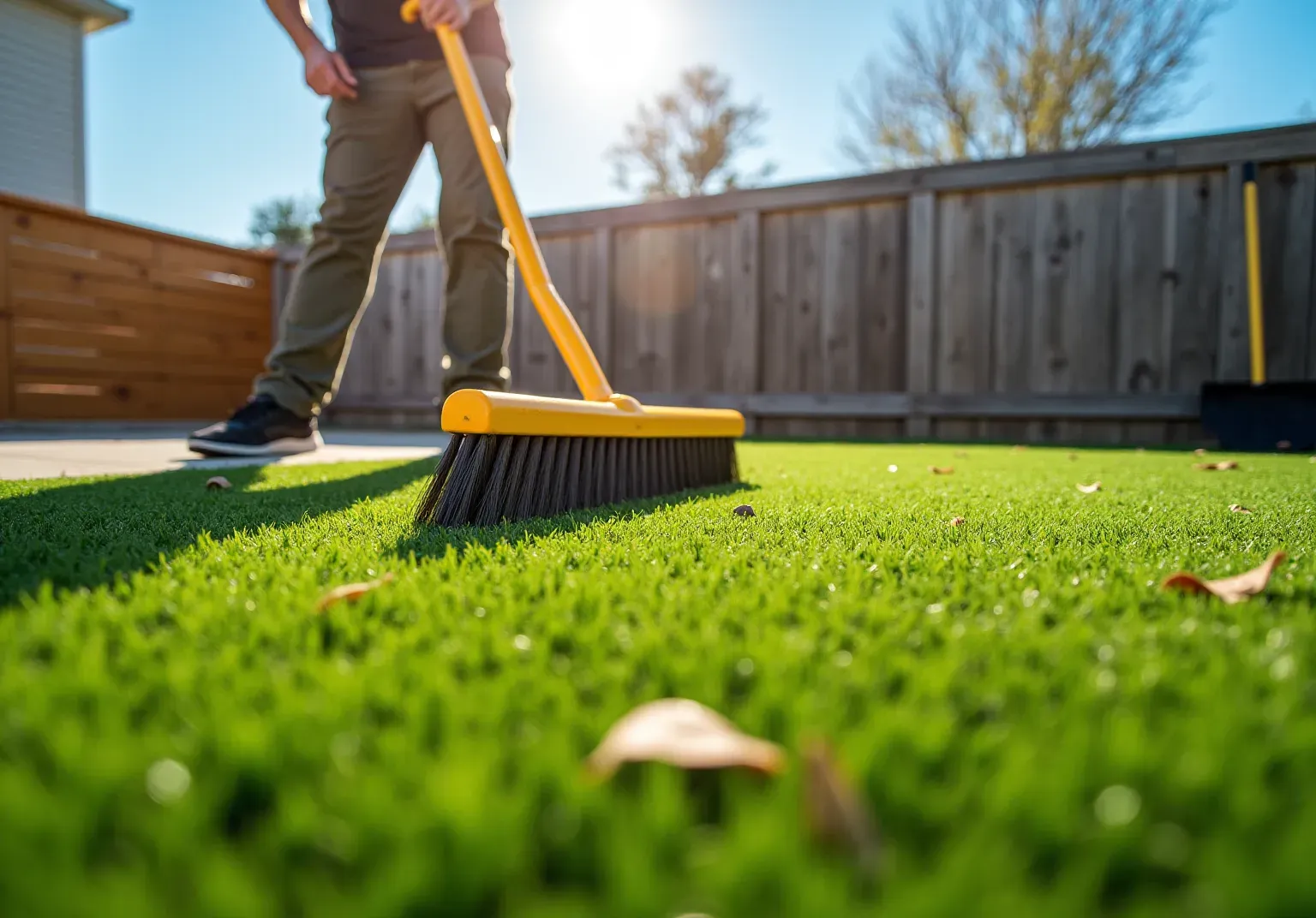 - Brushing: Regularly sweep the grass fibers with a or brush to lift them back up and restore their natural appearance. This is especially important in high-traffic areas to prevent matting.