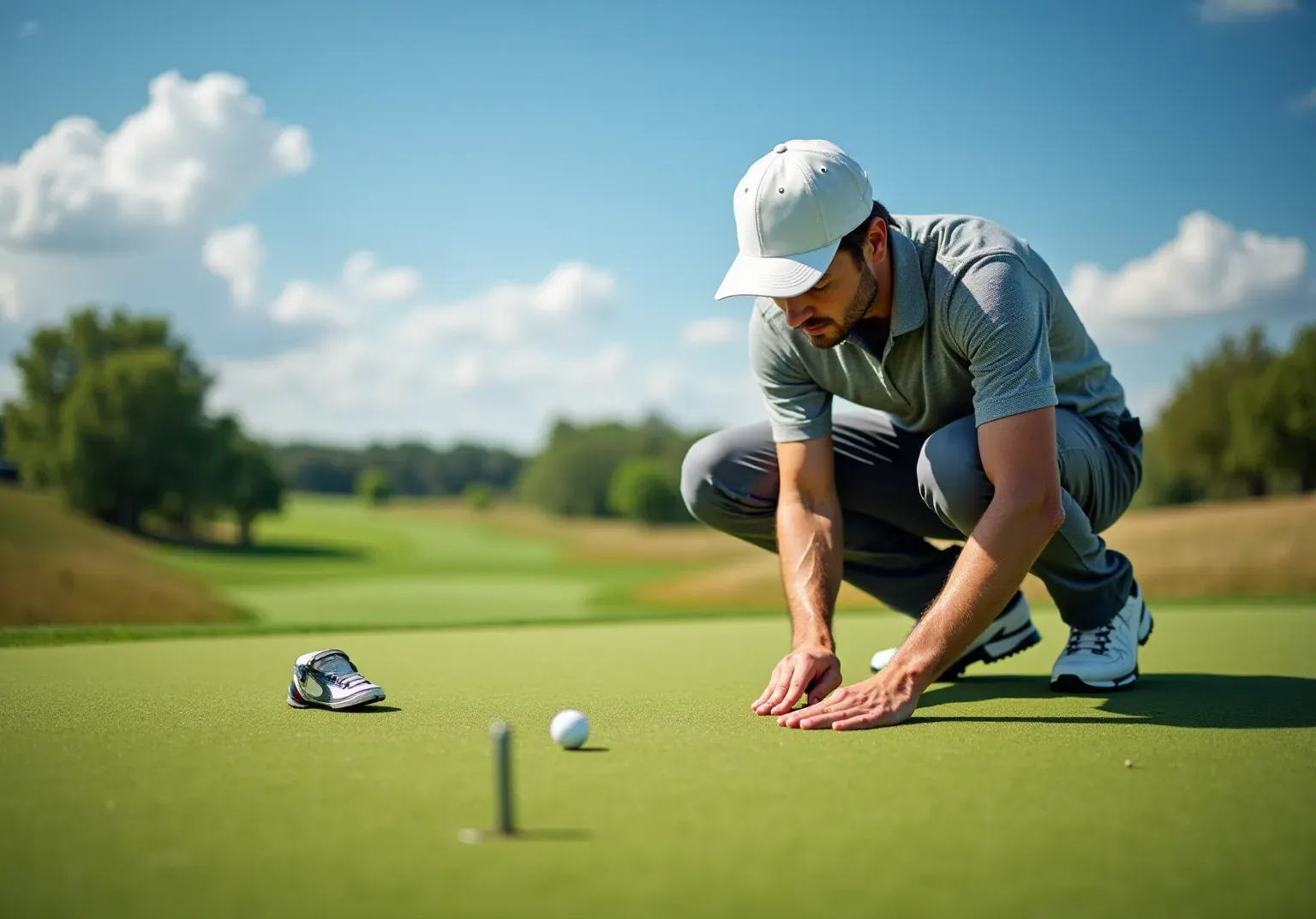 - Approach the Green: Begin your assessment from a distance, ideally from the fairway. This wider viewpoint enables you to better comprehend the general incline of the green, as most greens are designed to angle from back to front.
