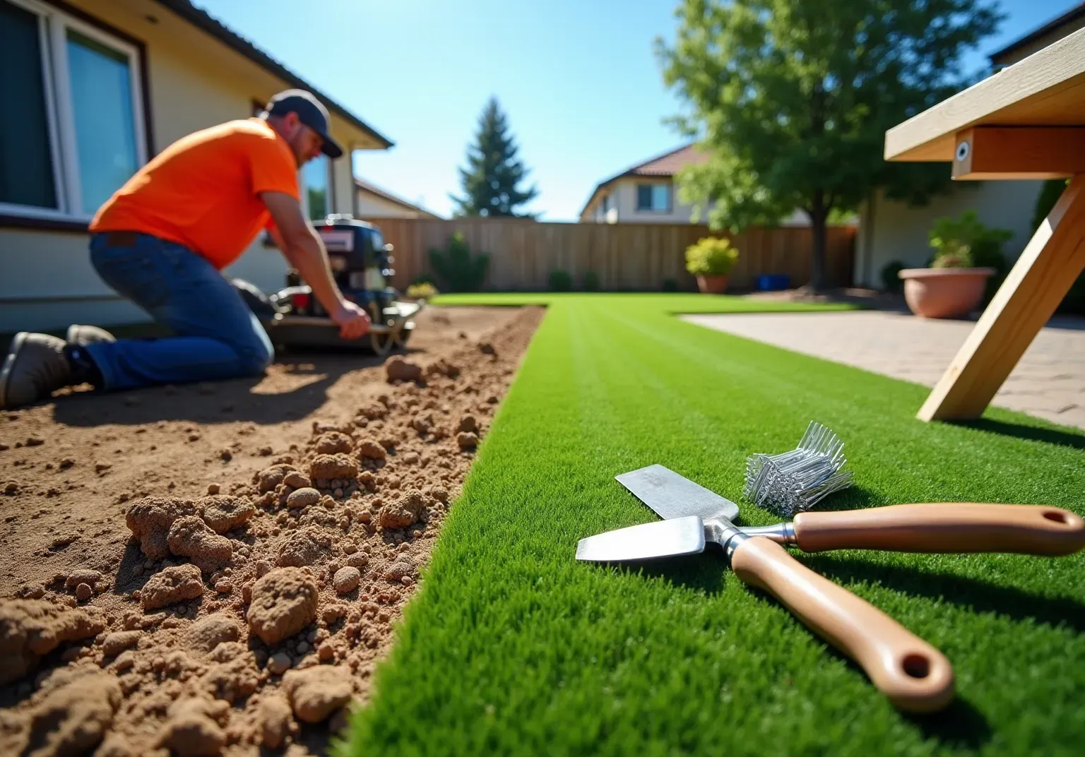 - Level the Ground : Use a rake to level the ground, ensuring it is smooth and even. A well-leveled surface allows the grass to lay flat, contributing to a natural appearance once installed.