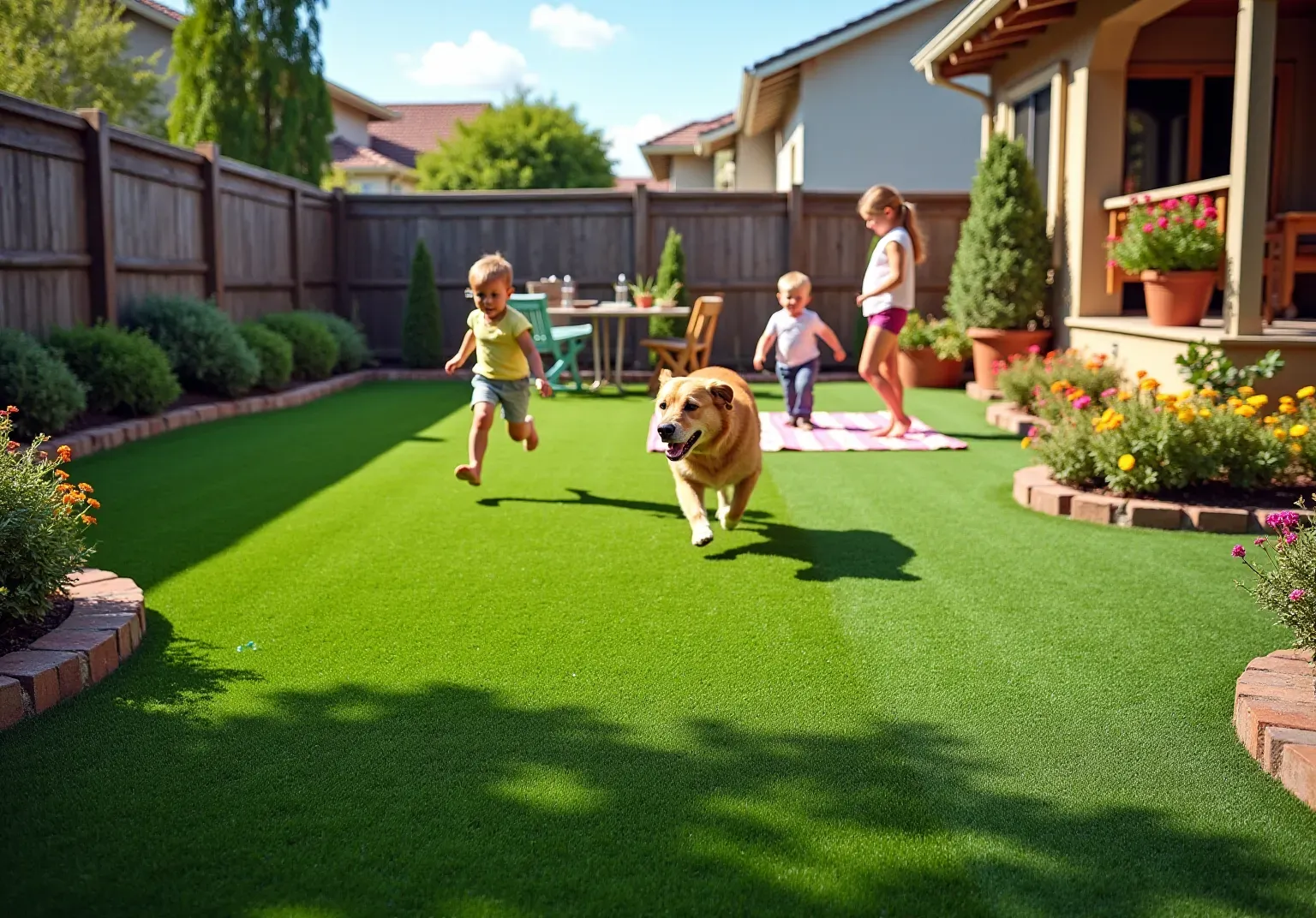 Unlike natural grass, artificial turf requires minimal upkeep, eliminating the need for mowing, watering, and fertilizing, allowing homeowners to enjoy more leisure time.