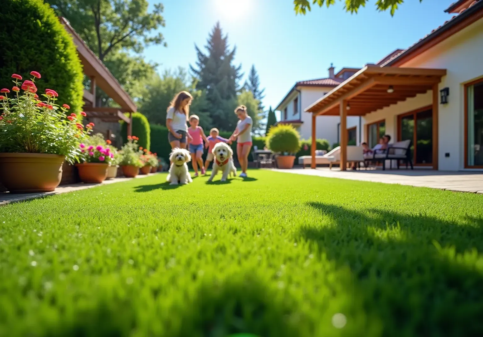 Synthetic turf reduces the need for harmful pesticides and fertilizers, contributing to a healthier environment.