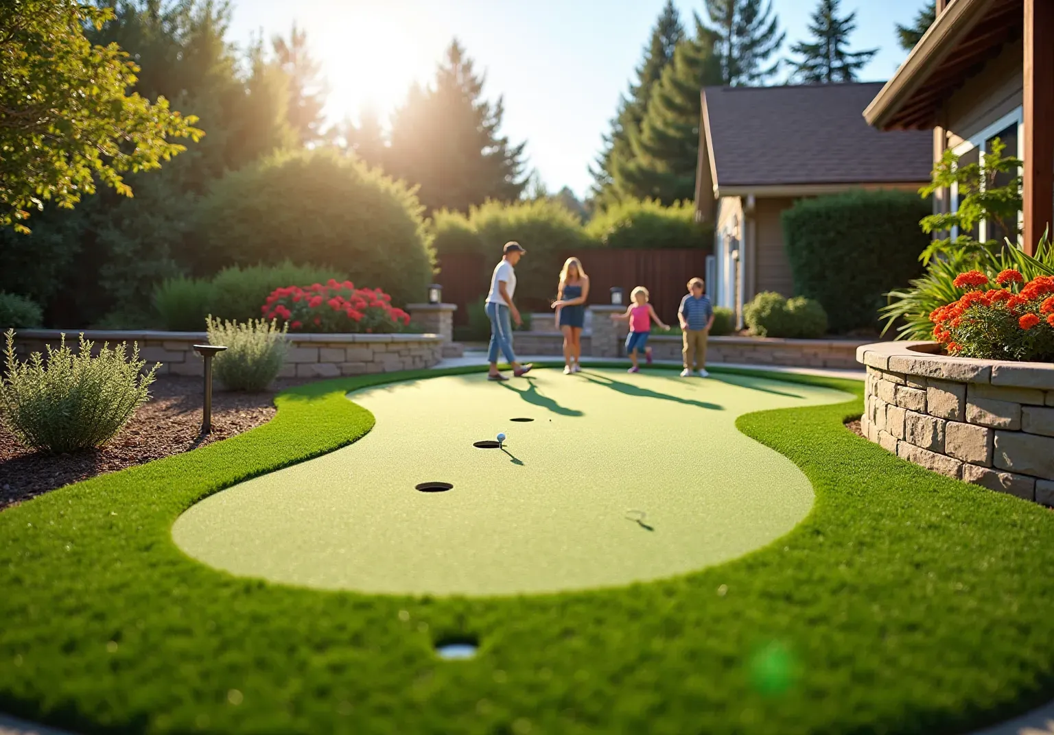 - [ Family-Friendly Designs ](https://backninegreens.com/blog/why-luxury-backyard-putting-greens-are-becoming-popular-in-the-usa): Many installations prioritize safety for children and pets by incorporating padded underlayment and non-toxic materials. This guarantees a safe play area while preserving a high-quality surface for golf, making it an ideal choice for families.