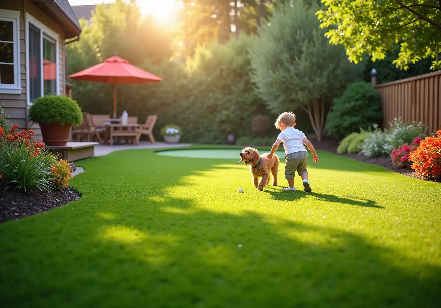 Premium synthetic turf enhances both the visual and practical value of properties, providing a vibrant, green appearance year-round while being safe for children and pets.